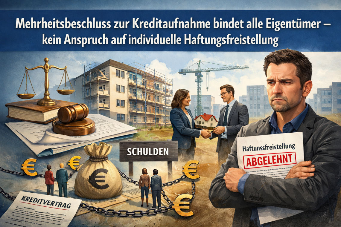 Mehrheitsbeschluss zur Kreditaufnahme bindet alle Eigentümer – kein Anspruch auf individuelle Haftungsfreistellung